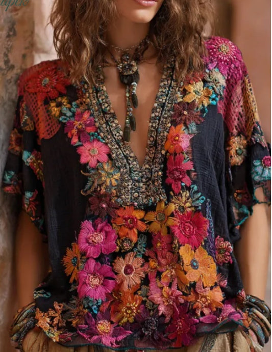 I love my new 2 piece swimsuit set with its original design in tribal colors and matching Palazzo pants!